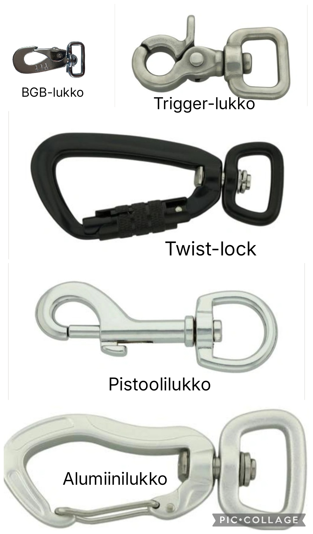 Saatavilla eri väreissä, pituuksilla ja lukoilla